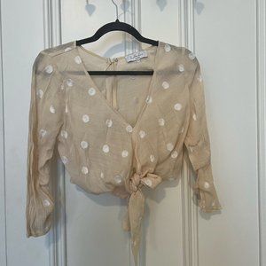 Size small, L'Academie adalene polka dot cropped wrap top. Sold out on Revolve's website!