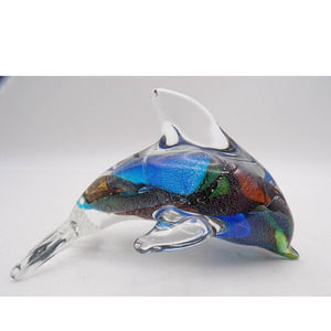 Murano Dolphin Figurine Crystal Glass Blown Paperweight Multicolor Ocean Tropic