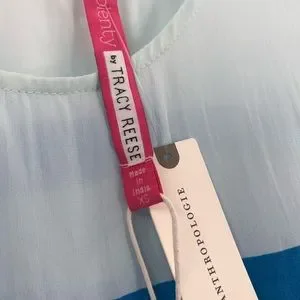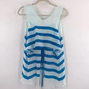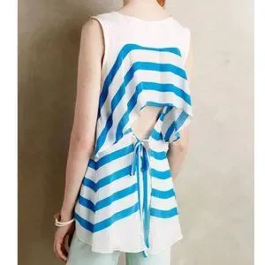 Anthropologie Plenty by Tracy Reese Marina Blue Striped Tank Top, size extra small. Flowy, semi-sheer tank top with open back that ties. 100% viscose. New with tags attached.