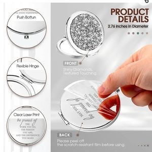 Lightweight and Portable: about 7 cm/ 2.8 inches in diameter, 7 mm/ 0.3 inches in thickness, the round small makeup mirror can be foldable into cosmetic bags, handbags, pockets, purses and more; The lightweight and portable design is suitable for home, office, shopping, party and other occasions