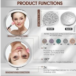 Double Sided Mirror Design: there are 2 kinds of functions of the compact mirror, one side for an ordinary mirror, which can be applied to check the overall makeup, and the other side for 2 x magnification effect.