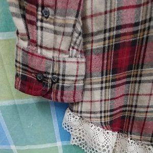 2714 Size XL Upcycled GH Bass, Southern Girls Drawl Button Down Shirt. Pit to pit 26" length 32" sleeve 24".