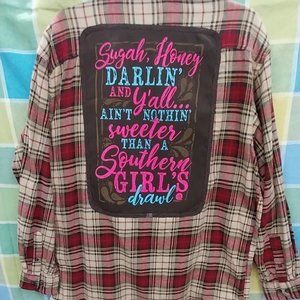 2714 Size XL Upcycled GH Bass, Southern Girls Drawl Button Down Shirt