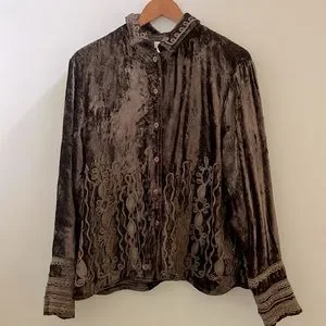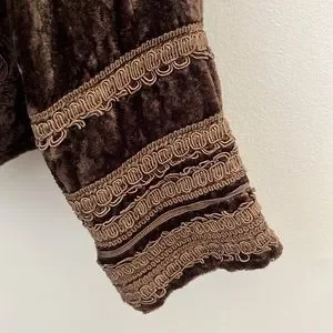 Brown velvet Jacket with Brocade Trim on Sleeves and Front Size L Cold water Creek
