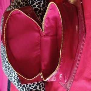 NWT Red coffin makeup or small purse black embroidery of cross,double zippers