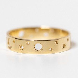 "14K Gold Plated Sun Moon Star Unique Wedding Ring, MLNN1222
