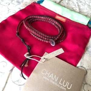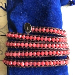 Chan Luu Signature Wrap Bracelet in brown leather and red gemstones.