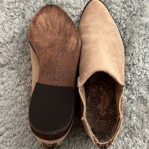 Comfy booties in size 6, tan suede with back zipper. Excellent condition. Not in original box.
