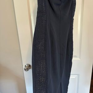 NWT, few small white marks on front bottom (dry cleaning should remove), navy w/nude underlay along the sides, size 8. Sleeveless with net-like stitching