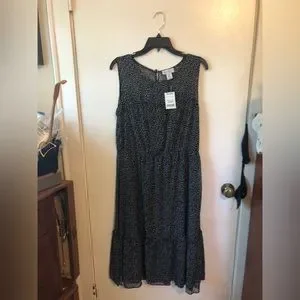 Brand New Sleeveless Dress. Purchased at Marshall’s. Sleeves Black Dress with White Print. Lining in the Dress. Buttons at the Back. Has Small Elastic Waist