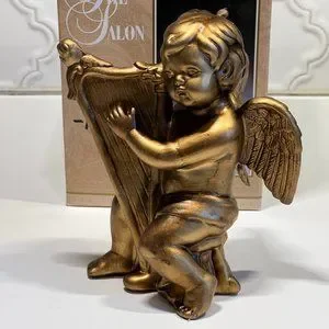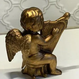 Vintage Gold Cherub Angel Wall Art figurines resin gold with musical instruments