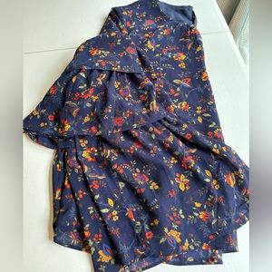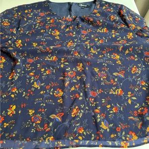 Womens madewell top. Pretty navy with floral print. Size xl. Layered with a sheer top over a solid bottom. Nice flowy design with cute bell sleeves. Excellent condition.