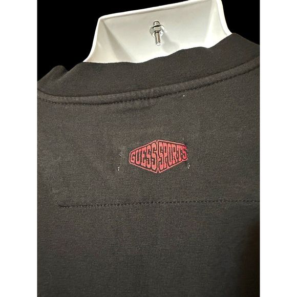 This rare vintage GUESS sports basketball all-over print t-shirt in size XL is a must-have for any fan of '90s fashion and sports memorabilia. Made of lightweight and breathable cotton material, this athletic fit t-shirt features a crew neckline and short sleeves. The white t-shirt with a solid pattern is adorned with a sports-themed graphic print and the iconic GUESS logo as accents. It has been machine washable for easy care. This t-shirt is perfect for adding a touch of nostalgia and vintage flair to any casual outfit.