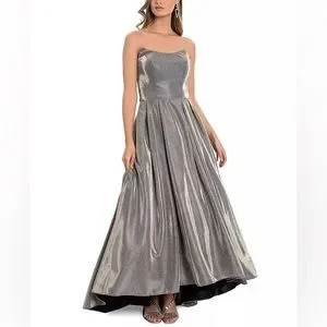 Betsy & Adam Womens Metallic Hi-Low Evening Dress