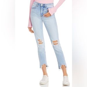 • Light blue wash, skinny-leg silhouette, destroyed hem