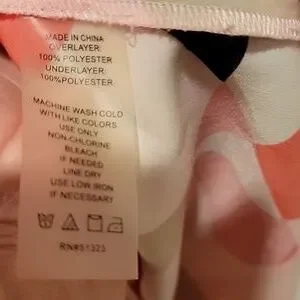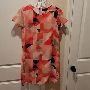 Beautiful summery dress from Vince Camuto. Zippers up the back. I tried to show the 2 layers in the dress. One is a very sheer overlay, which just adds to the beauty of this dress. Colors are what I would describe as salmon/coral. Approximate measurements are 18 inches from pit to pit and 35 inches from shoulder to hem. Comes from a pet and smoke-free home.