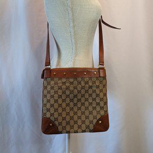 Authentic GUCCI Studded Flat Messenger Bag.