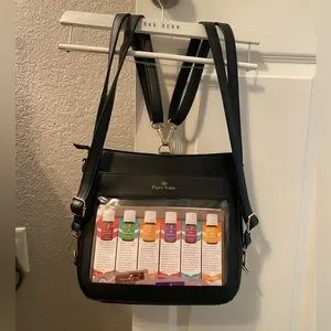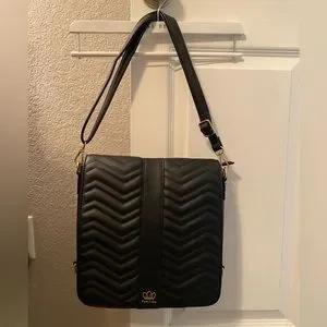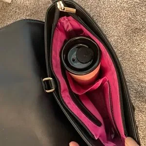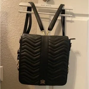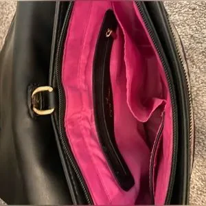 EUC Black with gold hardware and hot pink inside. Only carried a few times. 2 removable straps- can be carried as shoulder bag, crossbody or backpack. Has a removable front cover with magnetic closure. No visible flaws other than very minor scratches on display window. Can’t tell when items are inside.