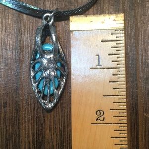Pendant is estate sale find - single unsigned earring converted into a necklace. Measures 2”x 0.5” x 0.25”
