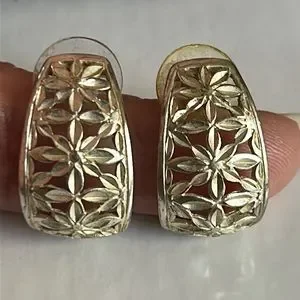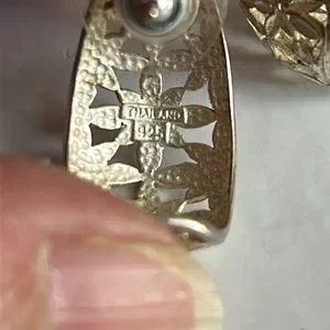 Beautiful Thai Sterling silver earrings featuring a beautiful flower pattern. Interior of the earrings is also stamped with the copyright symbol and “SU” although I’ve been unable to figure out which jeweler or creator this refers to. Gorgeous earrings, estate sale find, smoke free home.