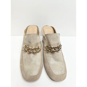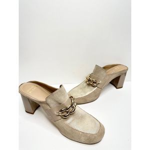 Donald Pliner Mule Womens Size 9 Tan Chained Slip On Leather Block Heel Shoes