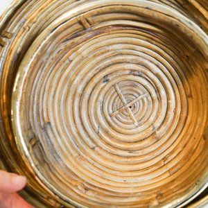 Pair of Rattan and Brass Italian Basket Bowls - in style of Gabriella Crespi