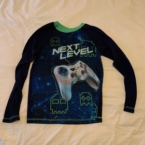 Faded Glory Size Large (10-12) Next Level Gamer Thermal Long Sleeve Top with game controller, little monsters, and space creatures? Blue, white, silver, green. Perfect to keep your little gamer warm! Good used condition!