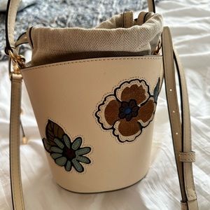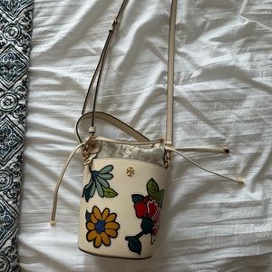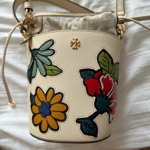 Tory Burch Emerson Appliqué Mini Bucket NWT New Cream Bag