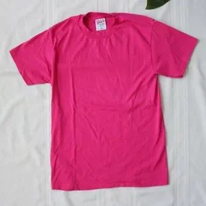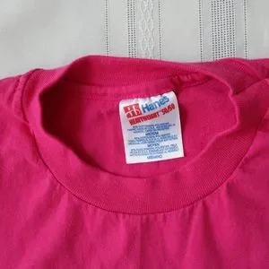 Hot pink blank single stitch t-shirt. Hanes heavyweight 50/50 shirt. 50% cotton and 50% polyester material. Marked a size medium in women's.