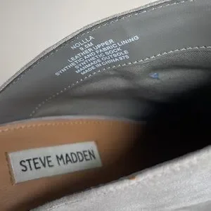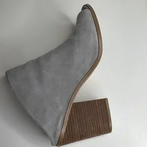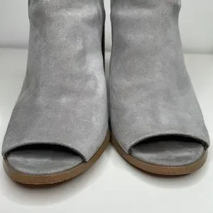 Steve Madden Nollla suede open toe stack heel mules bootie in pewter, size 9.5