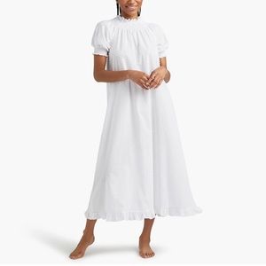 The Caroline is a long Nap Dress® with a puff sleeve and smocked neck that can also be worn off the shoulder. The sleeves feature loose smocking and no elastic, so you can sleep (work, or play) comfortably.