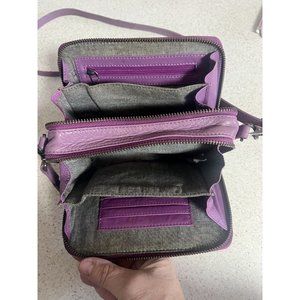 Elk 100% Leather Purple Crossbody/Clutch Small Bag/Wallet - In Very Good Pre-Loved Condition