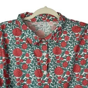 Tulip Top Button Down Floral Tunic 100% Cotton Long Sleeve Size Large Boxy