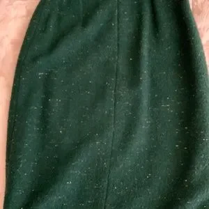 Ladies vintage Karl Lagerfeld suit, skirt with jacket. Euro size 38, or US 6. Wool with satin lining. Color is green with multi color flecks. Beautiful button accents. Item is in very good condition. Sold as is.