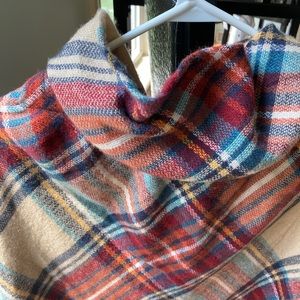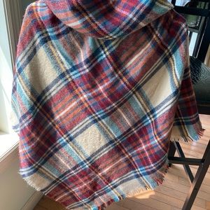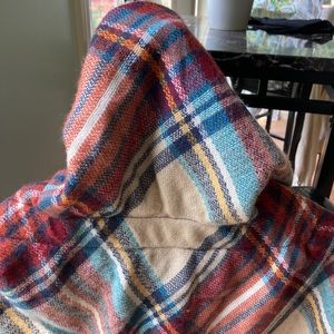 This autumn color Shaw by Mixit is a one size . So great for those cooler fall days or nights ! You can really dress this Shaw up ! Or too wear to pick pumpkins . It’s very warm ! Only wore it once it’s kinda big for me I am petite . But absolutely love this Shaw ! Has to neat buttons in the front and the top comes up to be a hood . Measurements in pictures .
