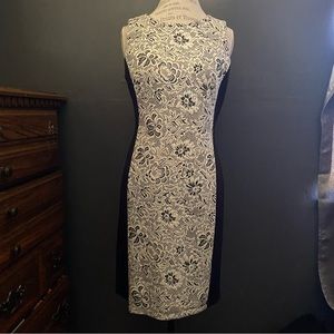 Emma & Michelle sleeveless black sheath dress with lace detail