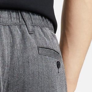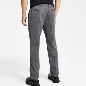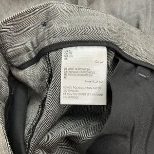INC International Concepts Men’s Classic Fit Herringbone Pleated Suit Pants. Charcoal gray and black. Fall 2022 style. Single pleat front. Cuffs. Half elastic waistband. Zip fly with button closure. Belt loops. Slash hand pockets. Two rear welt pockets with button closure. Unlined. Macy’s describes the fit of these pants as classic fit pants sitting at the waist, relaxed fit through hips and thigh with a straight leg opening. 85% polyester, 13% rayon, 2% spandex. Machine wash cold.