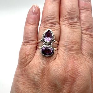 Genuine Faceted Amethyst Oval & Tear Drop .925 Sterling Silver Ring