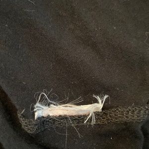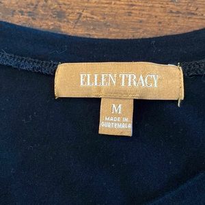 This cute Ellen Tracy T-shirt has a lot of stretch. Size M but loose fit and-with stretch. It’s black. Fabric Contant tag has been cut out. But I have the same shirt listed in a small navy and it has the contents tag listing 95% rayon and 5% spandex.