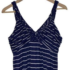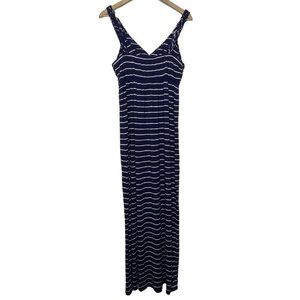 ๐ DESIGN HISTORY | Blue and White Striped Maxi Dress with Braided Neckline | L