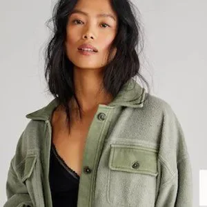 EUC Free People Ruby Oversized Fleece Shirt Jacket Shacket Jaded Cozy Size XS