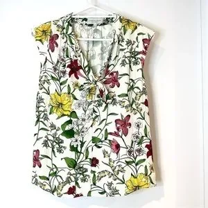 Veronika Maine top blouse floral tie front white pink yellow ladies size 6