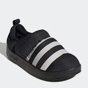 The Adilette like you've never seen it. While these adidas Puffylette shoes are on the foundation of the iconic slides — and have all the same comfort — they evolve into a whole new world of 360-degree plush goodness. When you slip into them, you're slipping into more than comfort — you're slipping into warmth, thanks to the PrimaLoft® insulation. A combined EVA midsole and outsole makes sure every step is cushioned. And rain is no problem here, since the water-repellent finish blocks it out. With these shoes, you're winter ready.
