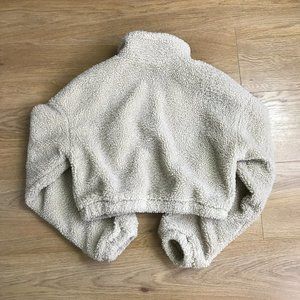 Shein Ladies Wool Blend Cropped Jacket Beige Size Small Faux Fur Sherpa