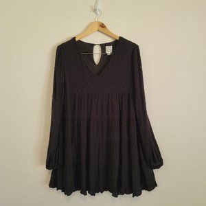 Blue Rain Womens Size XS Swiss Dot Babydoll Tiered Dress Black Dark Academia Top