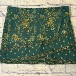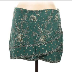 Free People - Faux Wrap Mini Skirt, Bandana Style - Size 4 (Green Floral)