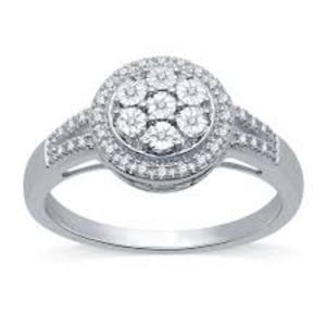 1/10 CT. T.W. Genuine Diamond Cluster Cocktail Ring in Sterling Silver Size 7