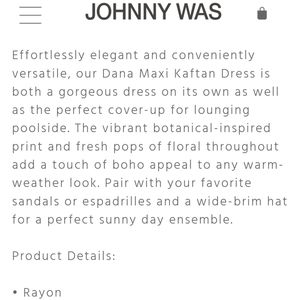 Nwt Johnny Was Dana Maxi Kaftan Dress. Size large/xl.