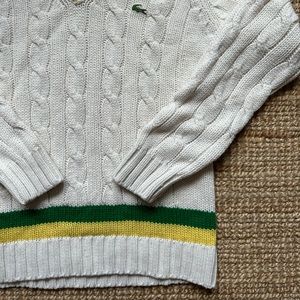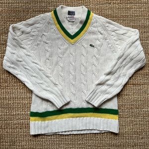 Vintage IZOD Wallachs Lacoste Cable Knit V-Neck Preppy Tennis Sweater Size XL