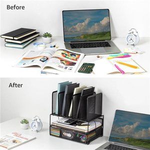 🧿5 upright sections: keep letter- or legal-size folders, files, and papers neatly organized and easy to access, or remove the top vertical sorter, if preferred
